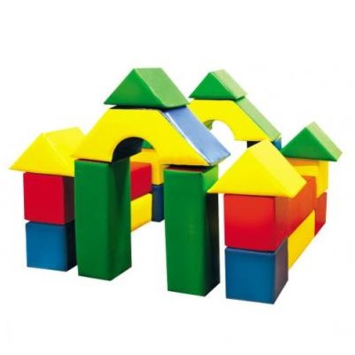 Куб 25х25 - 8 шт., треуг.призма 25х25 - 2 шт., треуг.призма 30х30 - 4 шт., прямоуг.парал-д60х20х20 - 8 шт., арка 40х40х25 - 2 шт.Кол-во фигур 24.