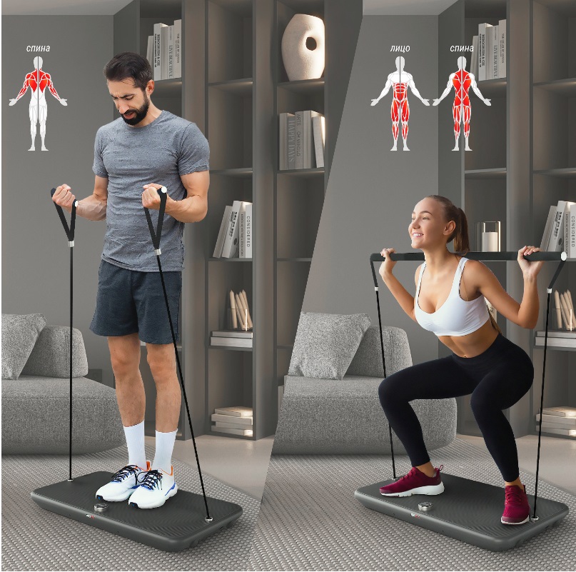 Компактная фитнес-платформа объединяет функции различных тренажеров, включая кроссовер, гребной тренажер, силовую раму и позволяет выполнять силовые тренировки, сопоставимые с занятиями со штангой и гантелями.