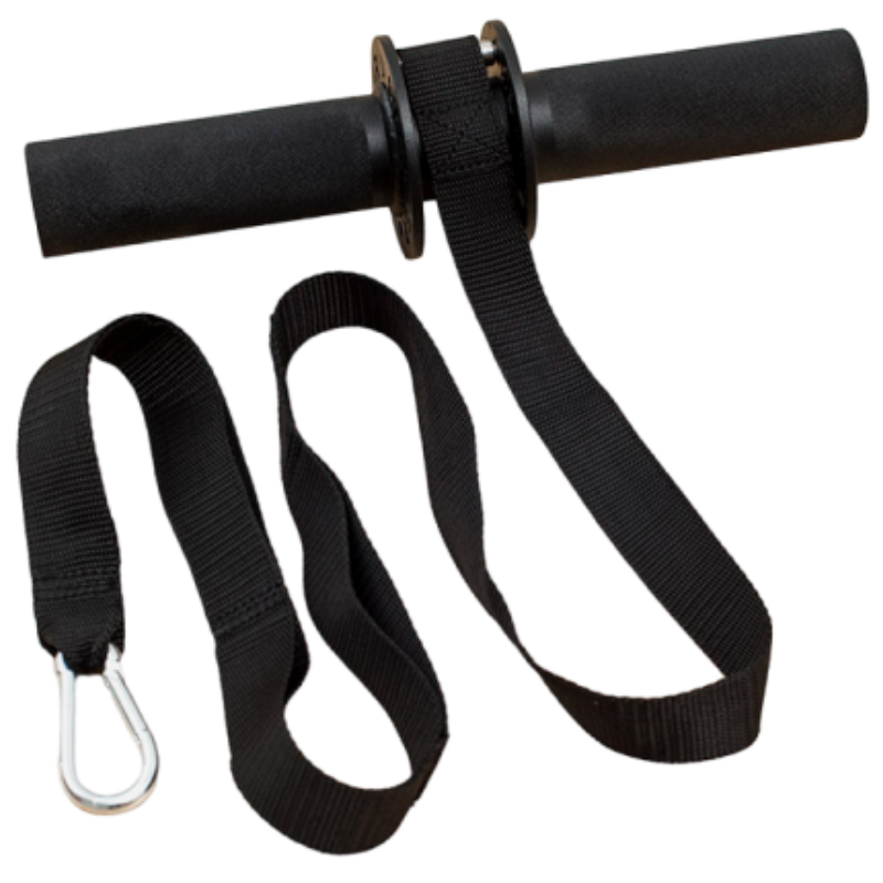 Он изготовлен из стали. Диаметр рукоятки - 50 мм, длина рукояток - 160 мм. В комплекте поставляется прочная нейлоновая стропа 1500 мм с карабином. Для тренировки необходимо пристегнуть груз к стропе, поднять тренажер на уровень плеч и поворачивать рукоятку вперед или назад для поднятия и опускания груза. При такой работе одновременно идет нагрузка на плечи и предплечья.