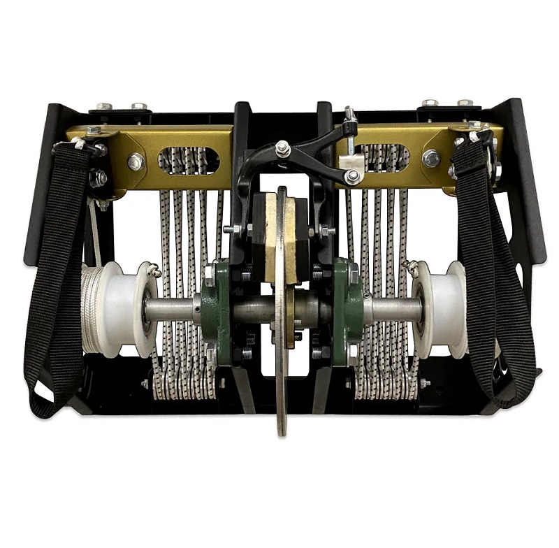 Тренажер оснащен механической, колодочной системой нагружения, для равномерного усилия тяги во время работы спортсмена